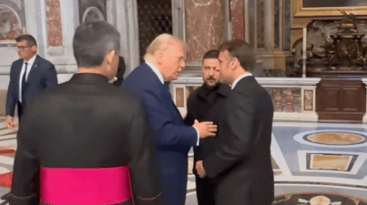 皇冠信用网 _再续“握手之战”?美媒:马克龙与特朗普在梵蒂冈会面,“一次没握,一次握手时间很长且力度十足”