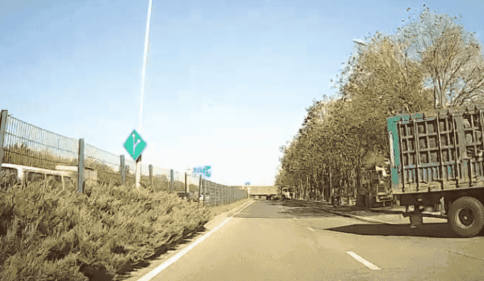 !两货车在北京高速出口突然逆行掉头!