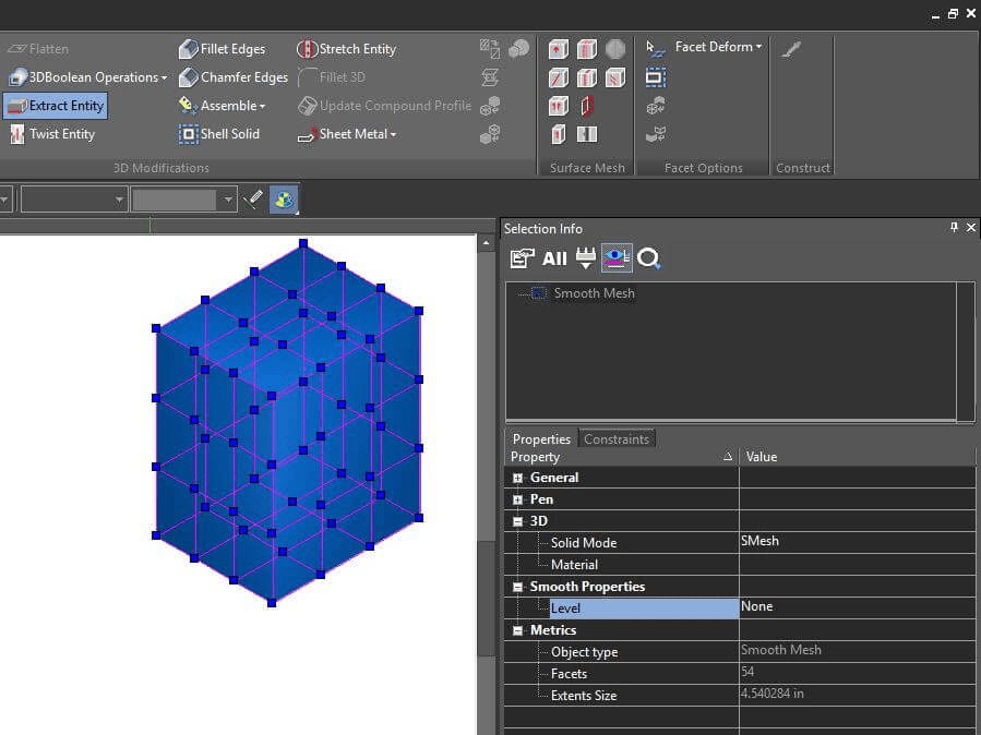 TurboCAD Platinum 2021 提供先进的 3D 曲面和 ACIS® 实体建模工具正版皇冠信用网代理。螺纹工具、扭曲挤压、挤压到面、压印工具、参数孔、压印等可以轻松创建更复杂的专业设计。访问高级修改工具,如弯曲、展开和小平面偏移,可以更轻松地修改现有几何体。还提供平滑表面网格/子 D 建模工具,允许创建更多有机形状。